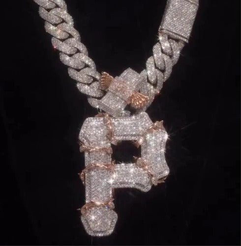 Pittsburgh PA Thorn Vines Pendant, Iced Out Chunky Pendant, Custom Letter, 925 Sterling Silver/10k, Hip Hop Pendant