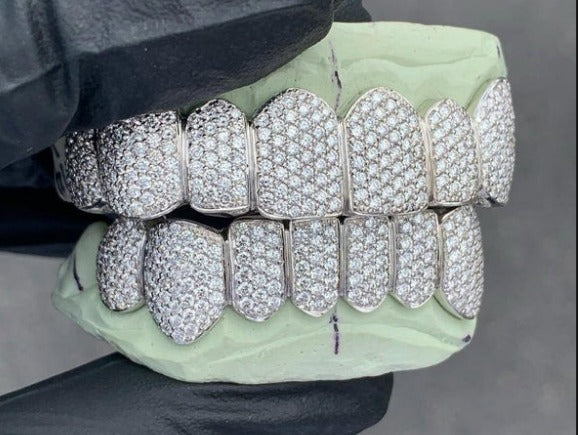 Upgrade your smile with our VVS Moissanite Grillz, crafted in solid 925 Sterling Silver and fully iced out with flawless Round-Cut Moissanite Diamonds. Designed for a seamless, high-end look, these Grillz are precision-made to fit perfectly and pass any diamond tester.