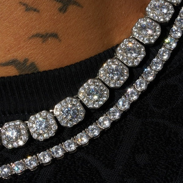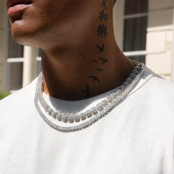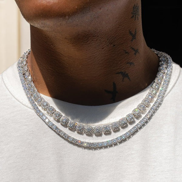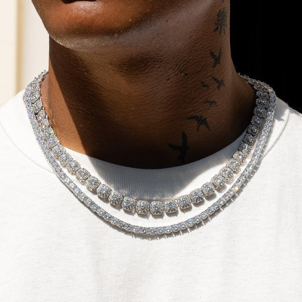 10mm Clustered Tennis + 5mm Tennis Chain Bundle - White Gold