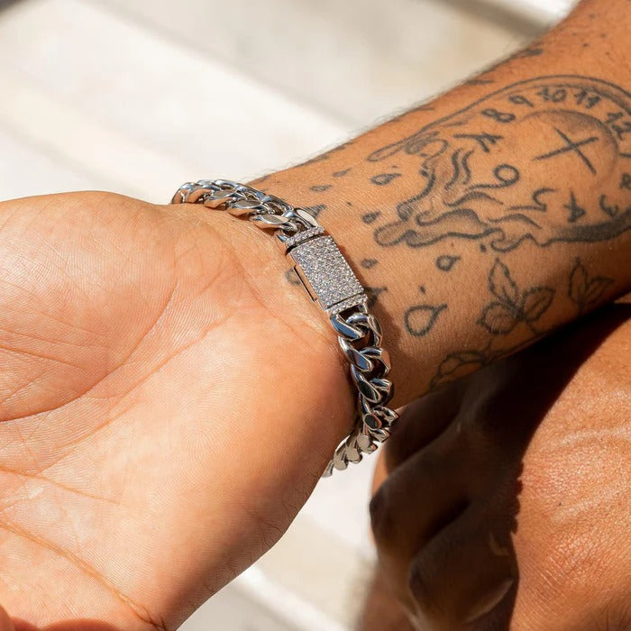 At 8 inches, this diamond cuban clasp chain contains 39 grams of 925 Silver and showcases an impressive 5.3 CTW of radiant, lab-created diamonds, delivering an unmatched sparkle and brilliance.