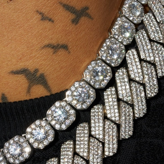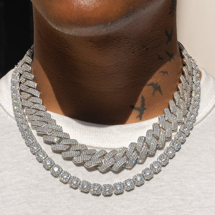 Classy jewels 20mm Monaco + 10mm Clustered Tennis Chain Bundle - White Gold