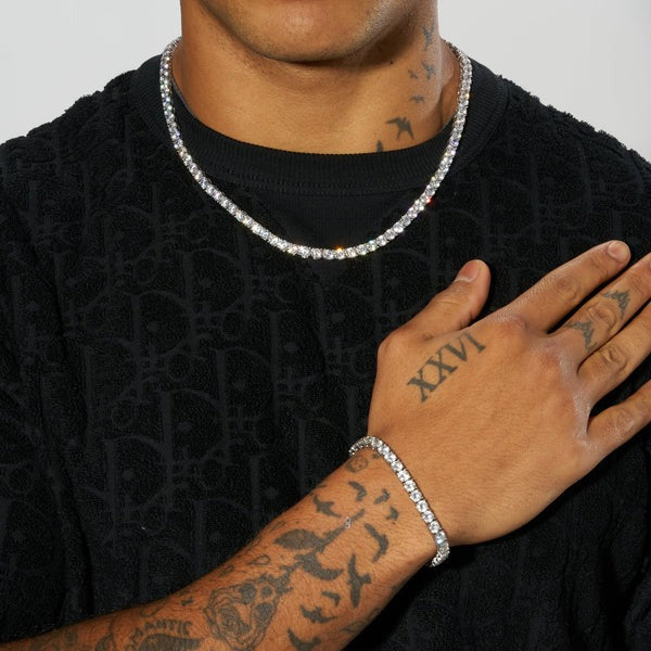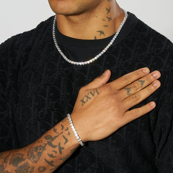 Classy Jewels 5mm Tennis Chain + Bracelet - White Gold
