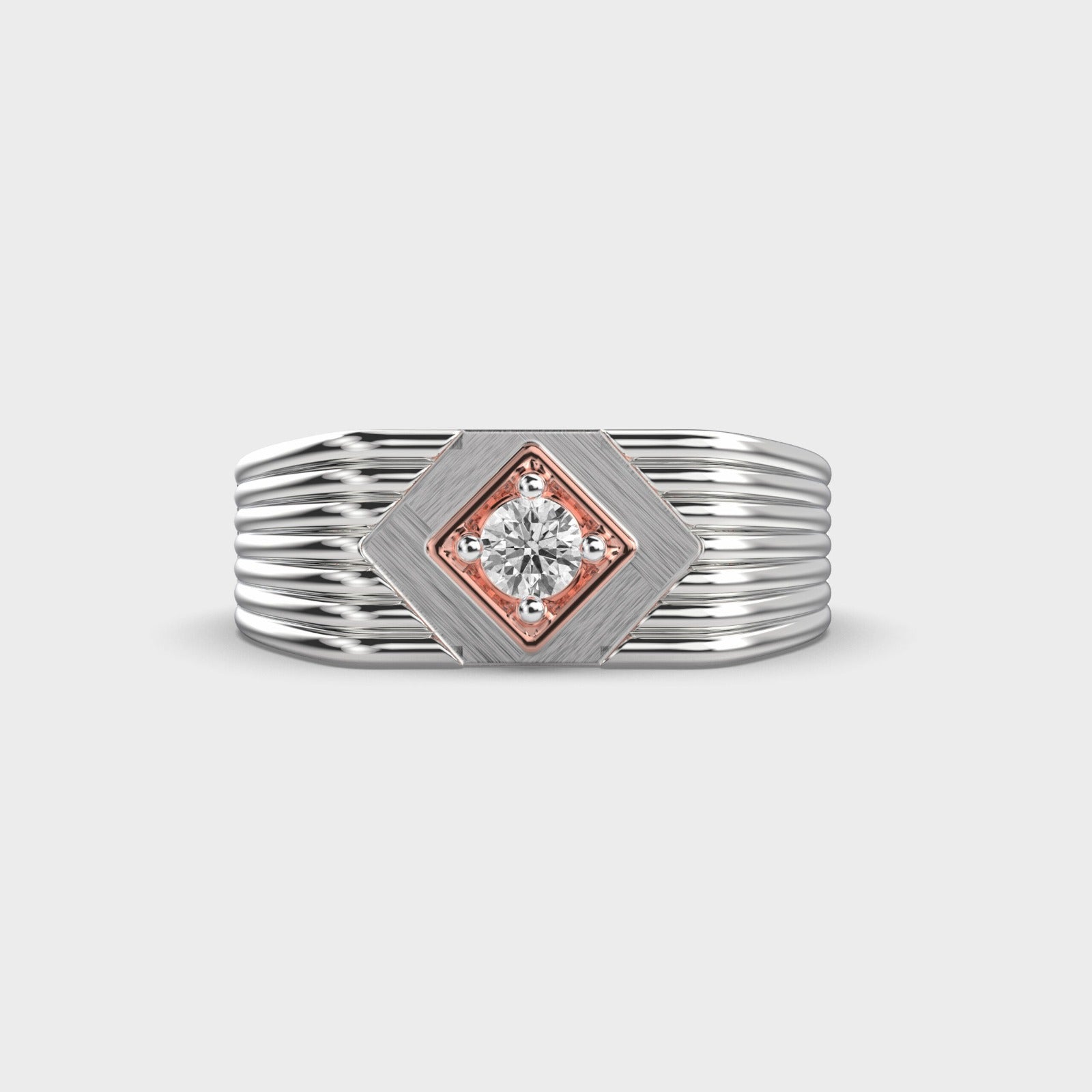 Make a bold statement with this modern men’s moissanite engagement ring. Designed for contemporary style and lasting durability, this ring features a brilliant moissanite center stone set in a striking square bezel with a refined two-tone metal finish. The textured band adds masculine character, while the high-polish surfaces deliver timeless elegance.