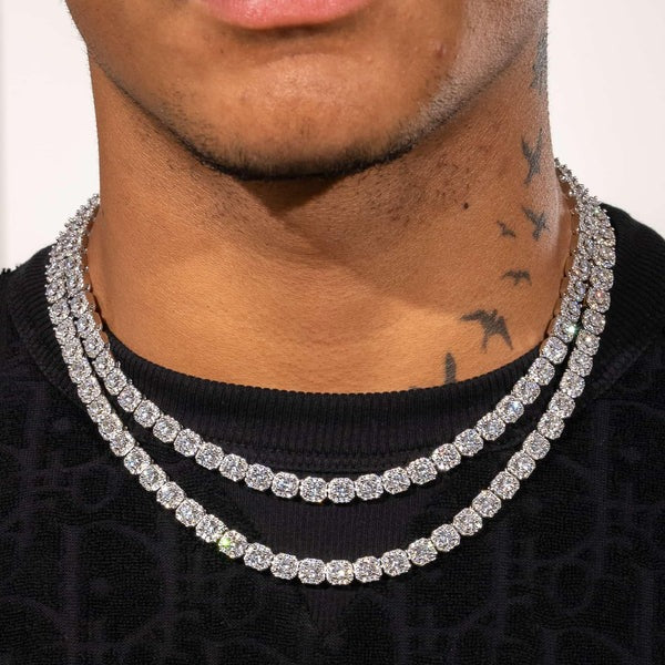 Classy Jewels Micro Moissanite Clustered Tennis Chain - 925 Silver - D Colour - VVS1