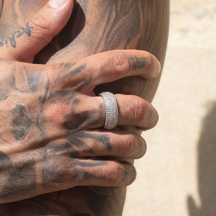 CLASSY JEWELS Moissanite 5 Row Paved Ring - 925 Silver - D Colour - VVS1