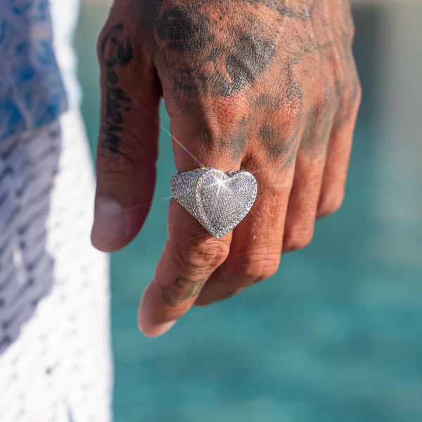 The Iced Heart Ring is flooded with 1mm hand-set stones around it's exterior. This piece will ensure you stand out from the crowd.