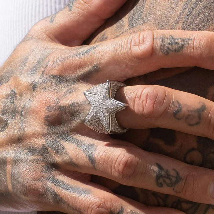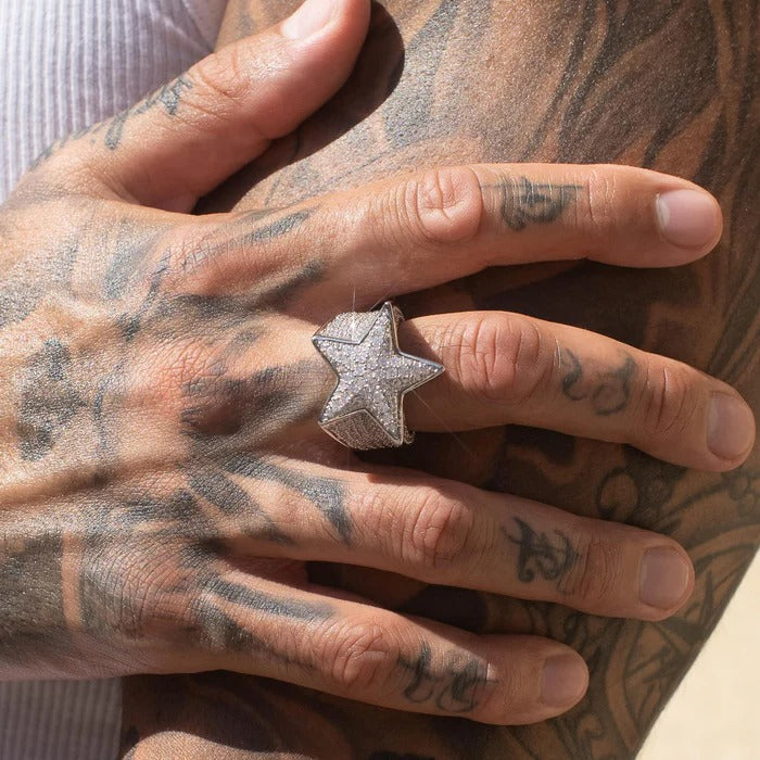 The Iced Star Ring has been a staple piece for a long time, for good reason. This piece demands attention. Flooded with 1mm hand-set stones around it's exterior. This piece will ensure you stand out from the crowd.