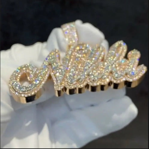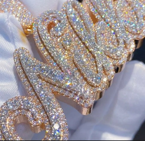 Real Moissanite Diamonds Men Layered Name Pendant, Custom Name, Alphabet, Letter, Cuban Chain, Real Solid 925 Silver, 14k Yellow Gold Plated