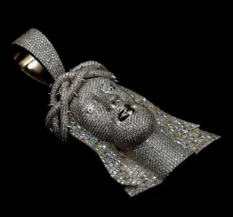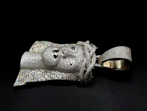 Jesus Face Iced Out Hip Hop Pendant | 3.5 inch Height Excluding Bail | Chunky Moissanite pendant | 925 Silver | Custom Moissanite Jewelry