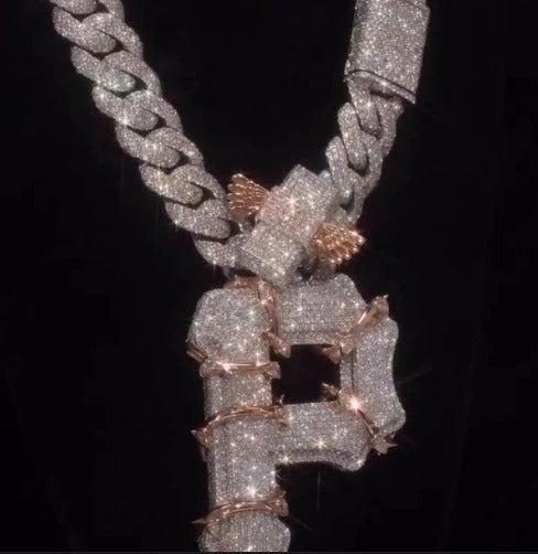 Pittsburgh PA Thorn Vines Pendant, Iced Out Chunky Pendant, Custom Letter, 925 Sterling Silver/10k, Hip Hop Pendant