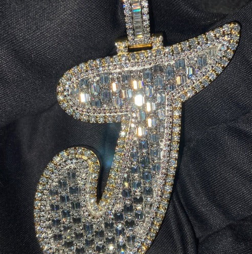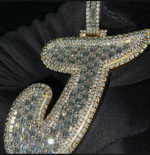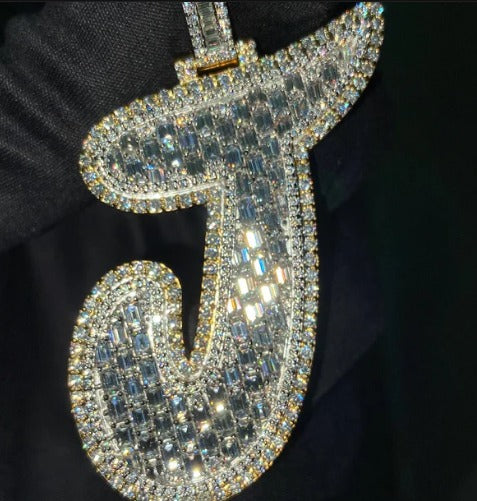 Emerald cut VVS1 Moissanite Layered Letter Pendant, Iced out Chunky Pendant, Custom Alphabet/Letter, 925 Sterling Silver/10k, Hip Hop Pendant