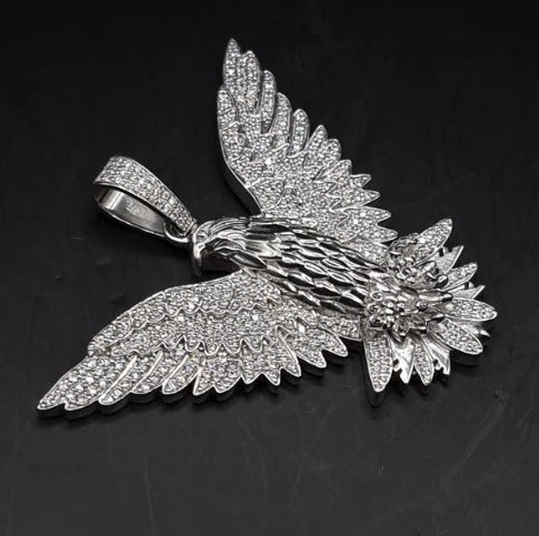 VVS Moissanite Diamond American Winged Eagle Handmade Pendant for Men Without Chain, 2.5" American Eagle Pendant, Animal Gift Men Jewelry